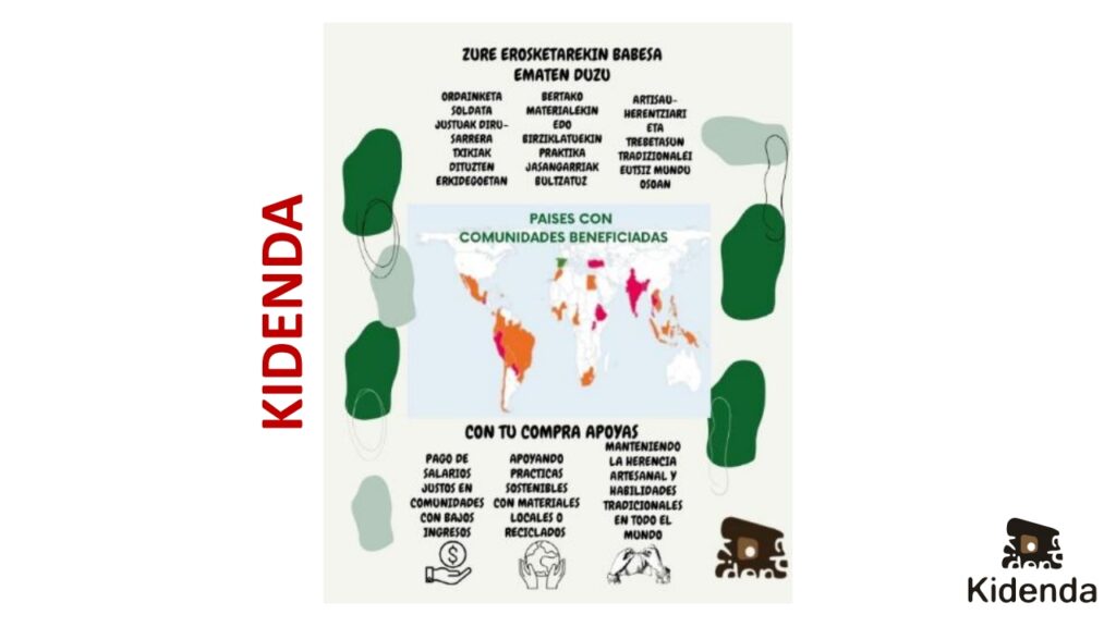 Caritas Bizkaia, a través de su participación en el proyecto Kidenda, trabaja desde una triple visión: sensibilización, incidencia y comercialización, bajo un enfoque integral que aborda factores sociales, económicos y medioambientales, incorporando los criterios y los principios del comercio justo internacional en nuestras acciones.